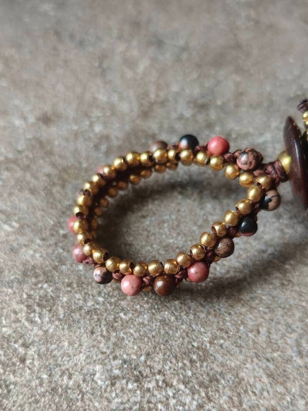 Bezaubernde kleine Handrassel aus Kalb-Rohhaut mit Stein- und Messingperlen, praktisch für unterwegs!